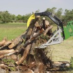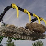 The Silver Bullet Series Rock Bucket has an optional grapple fork attachment available for most applications. The rugged grapple fork incorporates a quick attach, user-friendly mounting design. The grapple fork also features 5/8" thick high carbon steel teeth, high strength kneed joint, heavy duty 1-1/4" plated pivot pins and twin 2-1/2" cylinders for powerful grapple strength. Hydraulic hoses plumbed to center for convenience (connection hoses and ends not included).